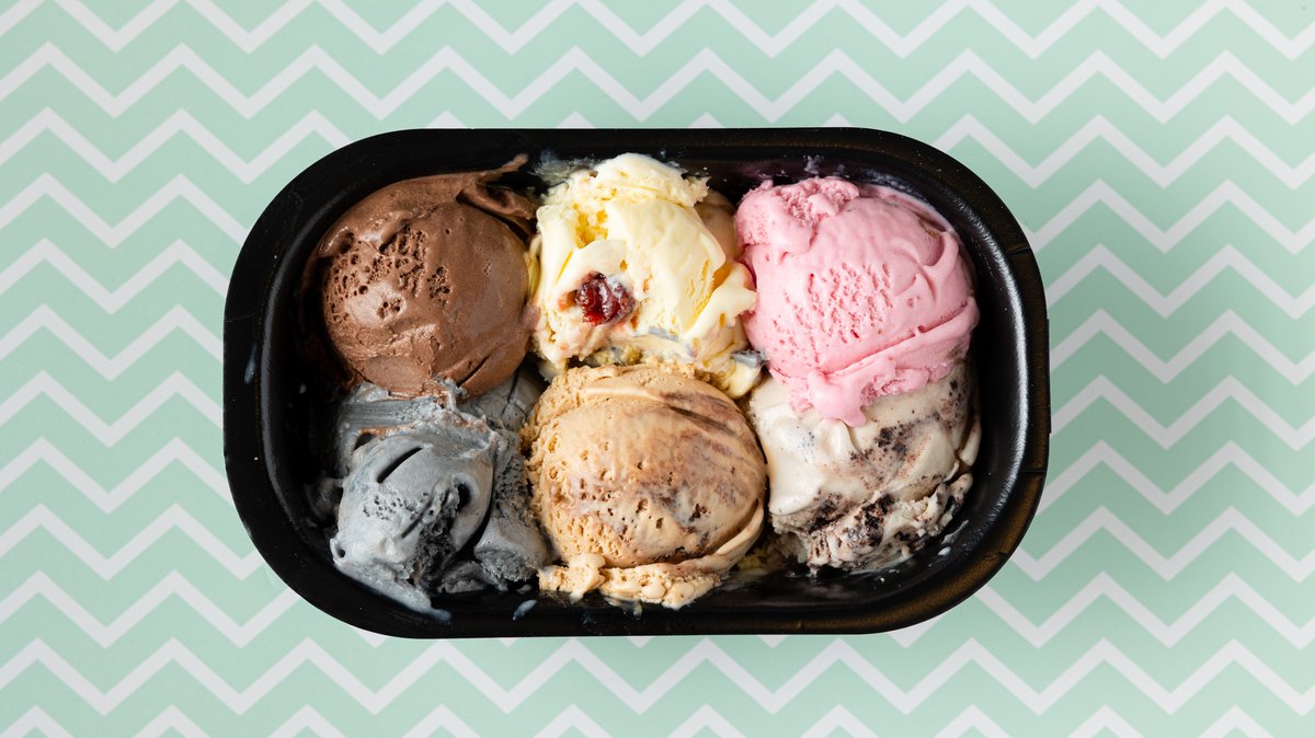 Με πραλίνα σοκολάτα, 1 μπάλα banoffee, 1 μπάλα καραμέλα, καραμελωμένα φουντούκια, σιρόπι καραμέλα και σιρόπι σοκολάτα