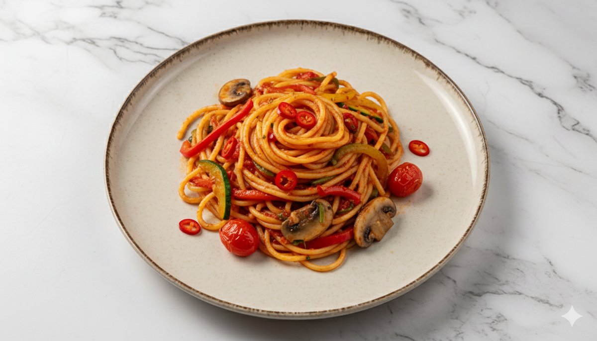 With 2 eggs, bacon, green pepper, mushrooms, tomato and gouda. Accompanied by green salad