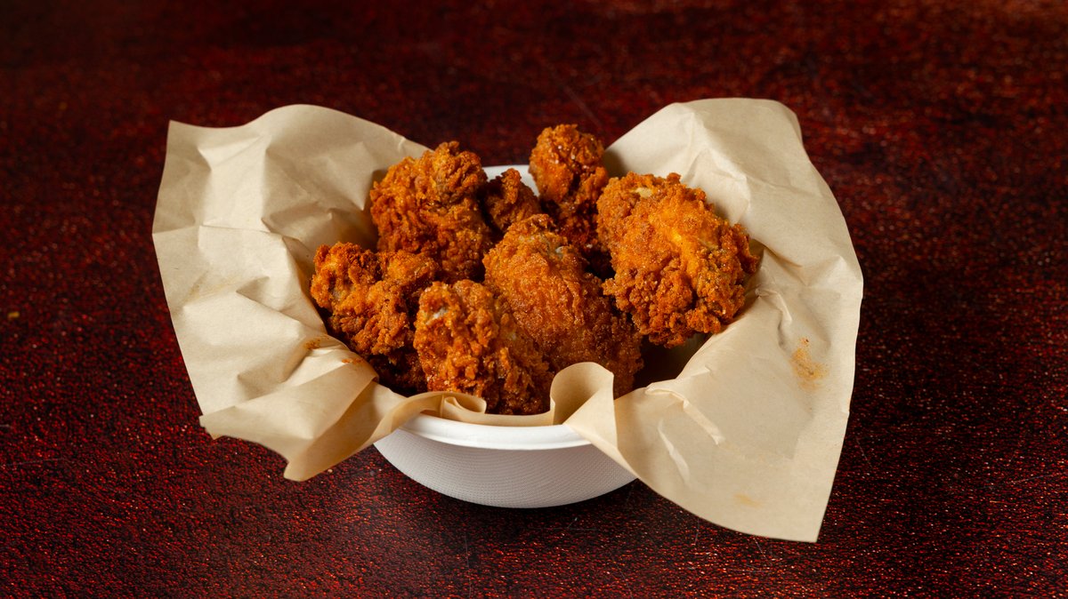 5-6 Τεμάχια. Μπουκίτσες κοτόπουλου. Συνοδεύεται από σπιτική μαγιονέζα με σχοινόπρασο, παρμεζάνα και σκόρδο
