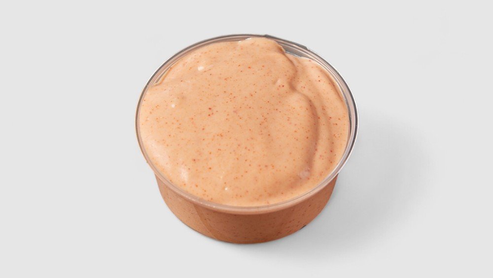 Κοτομπουκιές, crambled κρεμμύδι, ροζ sauce και αγιολί sauce