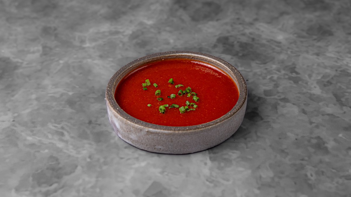 Με ζουμερό φιλέτο από μπούτι κοτόπουλο, ντομάτα στη σχάρα, κρεμμύδι στη σχάρα, ρόκα και chicken sauce