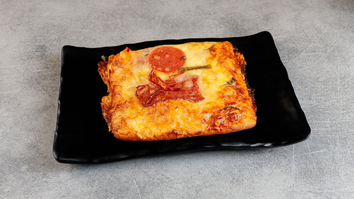 With tomato, cheese, bacon, pepper and air-dried salami
