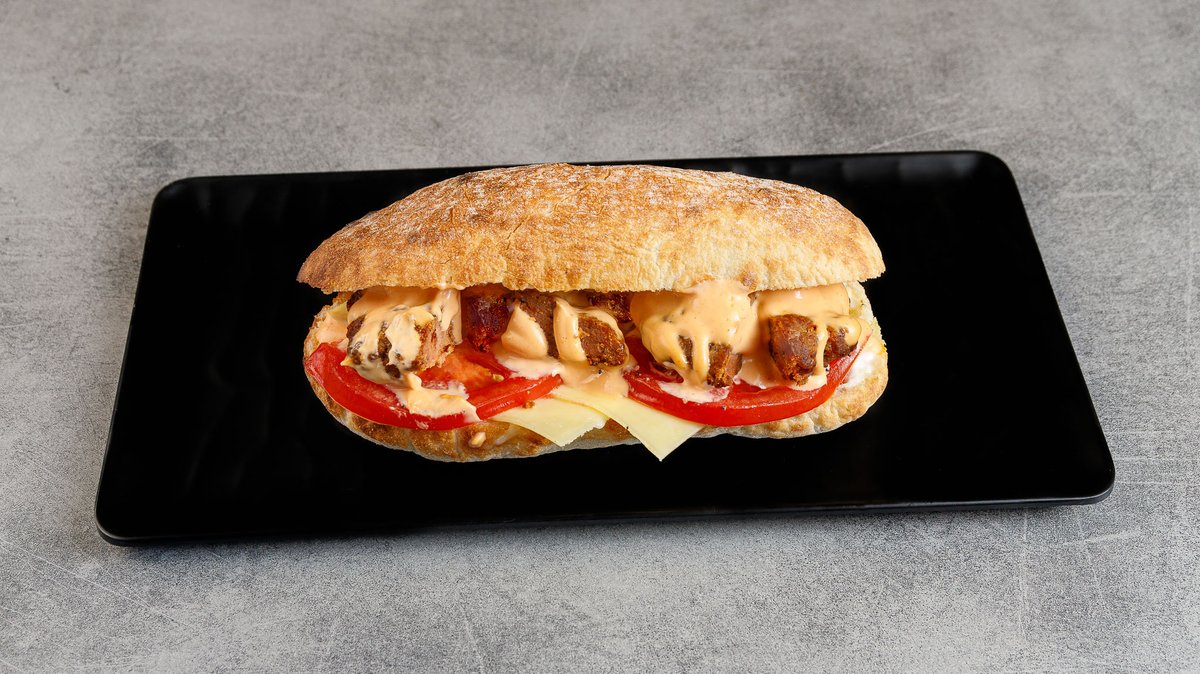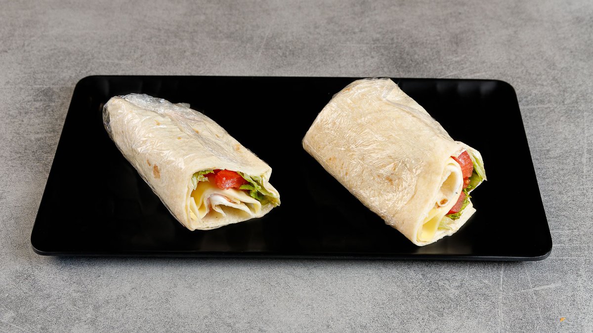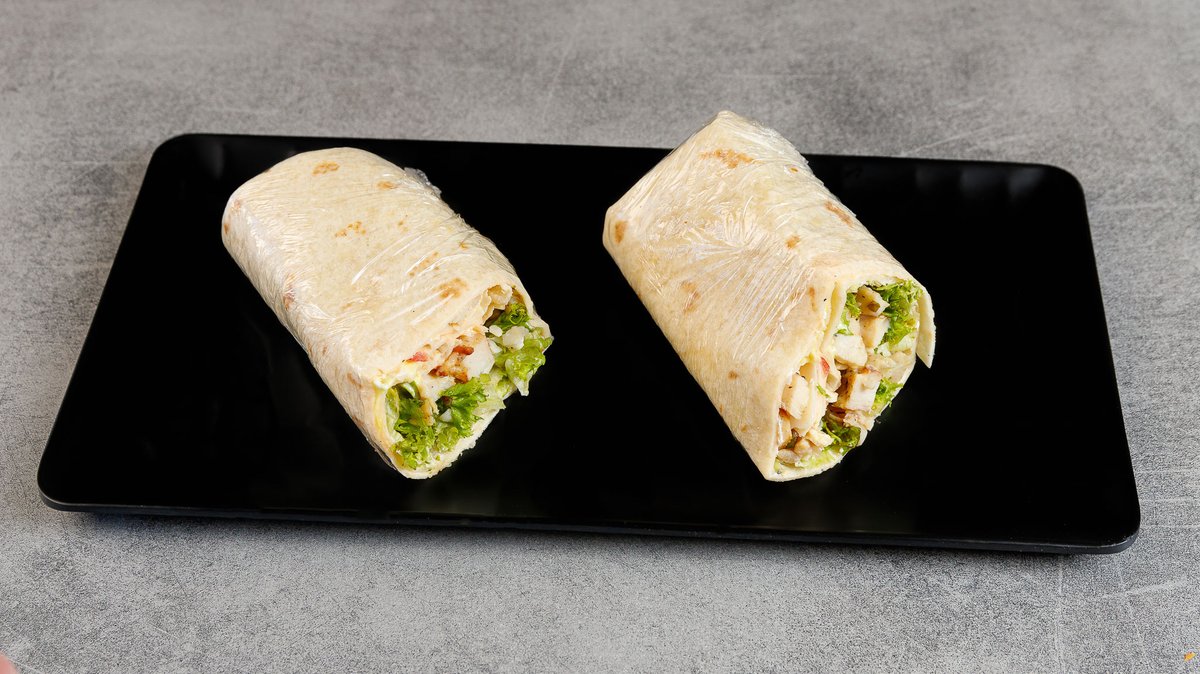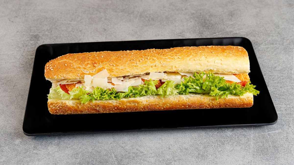 With chicken fillet, philadelphia, tomato, lettuce and yellow sauce
