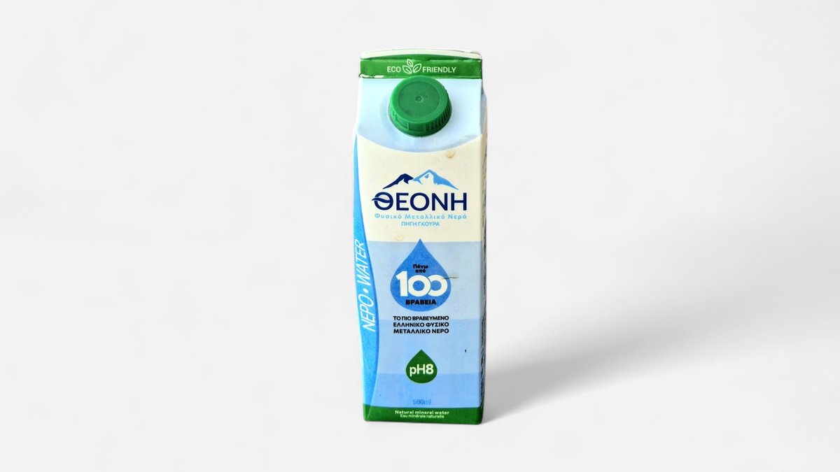 Natural mineral water THEONI 500ml in 100% recyclable paper packaging