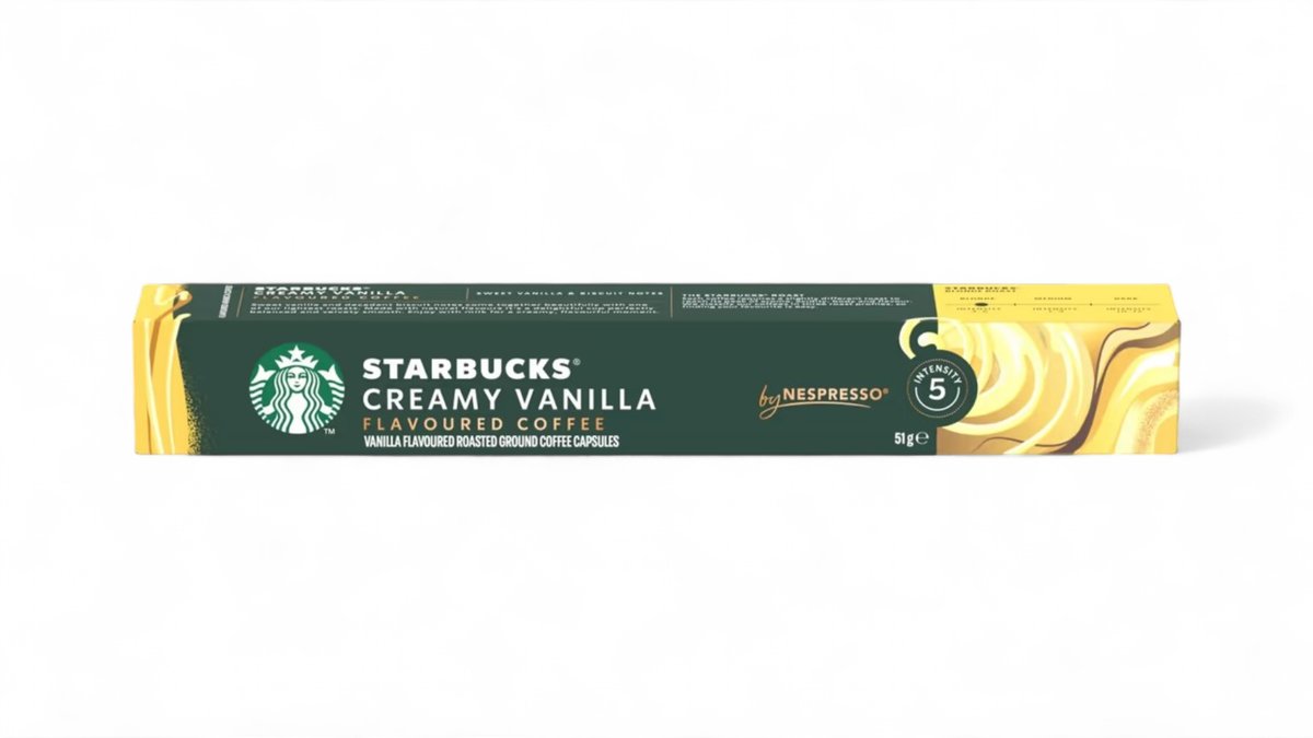 Indulge in the seductive, creamy vanilla and biscuit notes of Starbucks® Creamy Vanilla by Nespresso®. Each Starbucks® by Nespresso® capsule contains a carefully selected blend of 100% Arabica roasted coffee beans. Enjoy with or without milk, for a sweet and indulgent cup of espresso coffee or an iced freddo