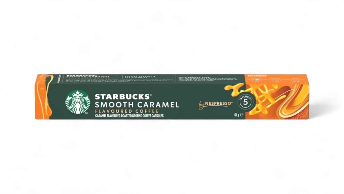 Soft notes of butterscotch and vanilla caramel await you in a balanced Starbucks® Smooth Caramel by Nespresso® coffee cup. On the roastier side of smooth roasting, ready to enjoy at the touch of a button - with or without milk for a sweet and indulgent cup for your next Starbucks® moment