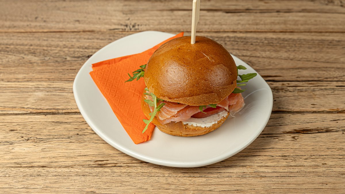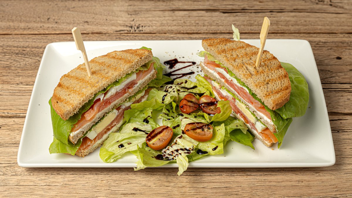 Σολομός, μαρούλι, ντομάτα, αυγό, τυρί κρέμα αρωματισμένη με λεμόνι και άνηθο.