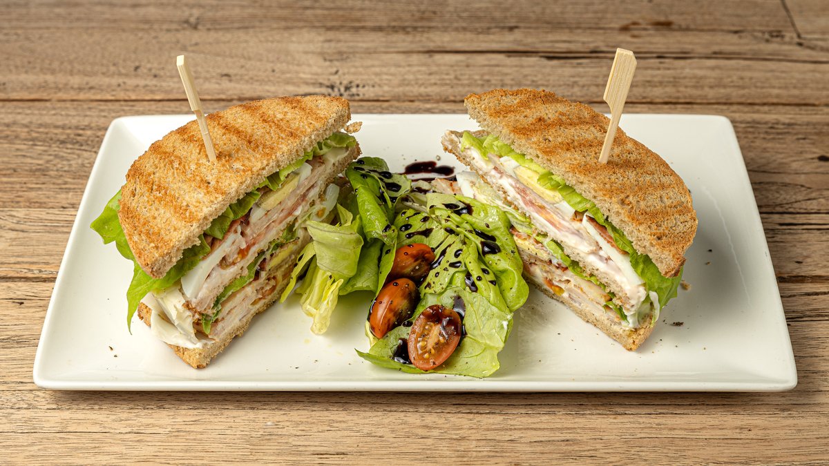 Κοτόπουλο ψητό, τυρί γραβιέρα, αυγό, bacon, ντομάτα, μαρούλι και μαγιονέζα.