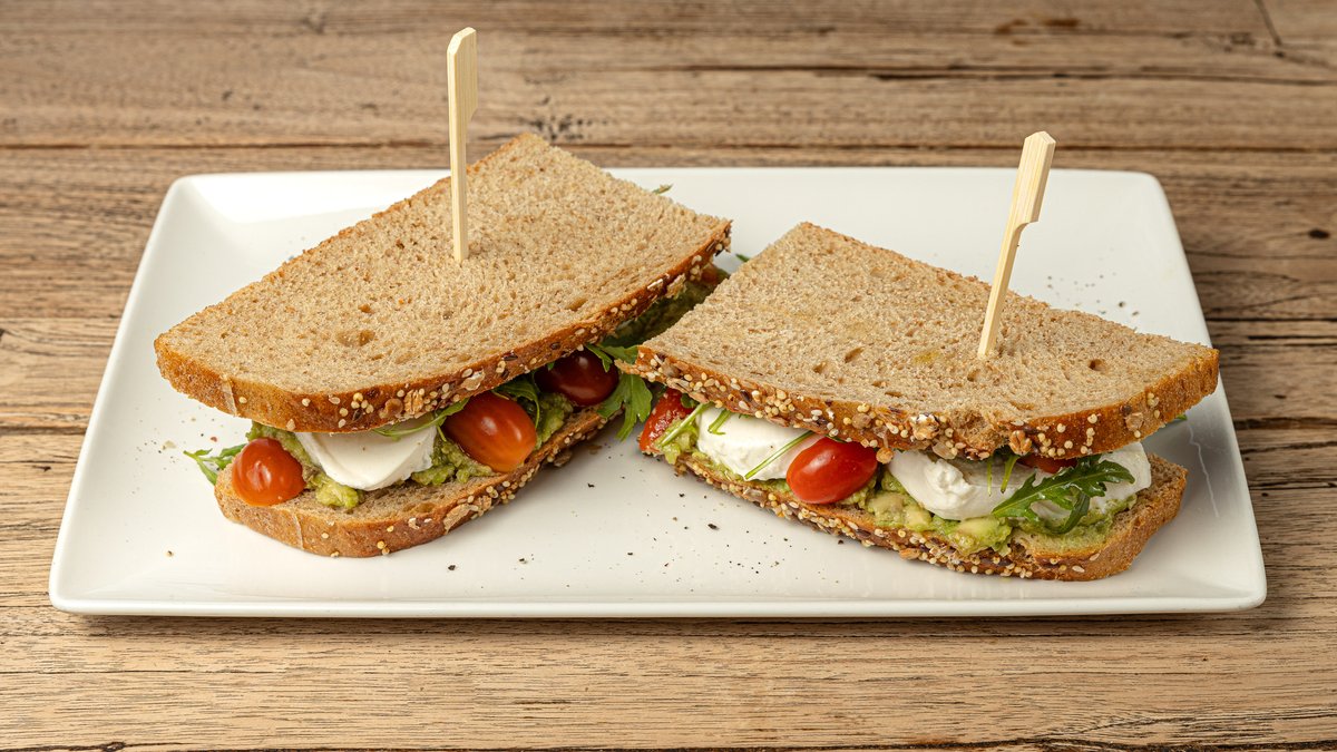 Με μοτσαρέλα buffalo, ντοματίνια, ρόκα, αβοκάντο και έξτρα παρθένο ελαιόλαδο