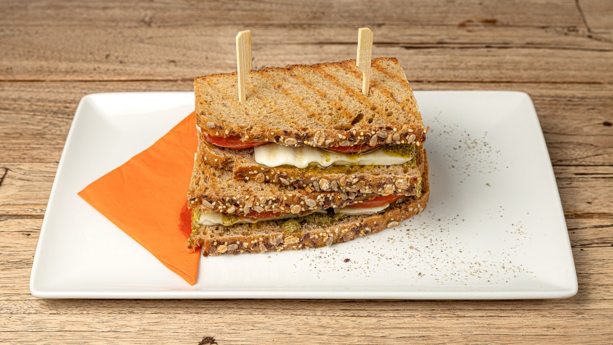 Zεστό σάντουιτς µε γαλοπούλα, γραβιέρα Νάξου, κρέµα τυρί σε ψωµί ολικής άλεσης