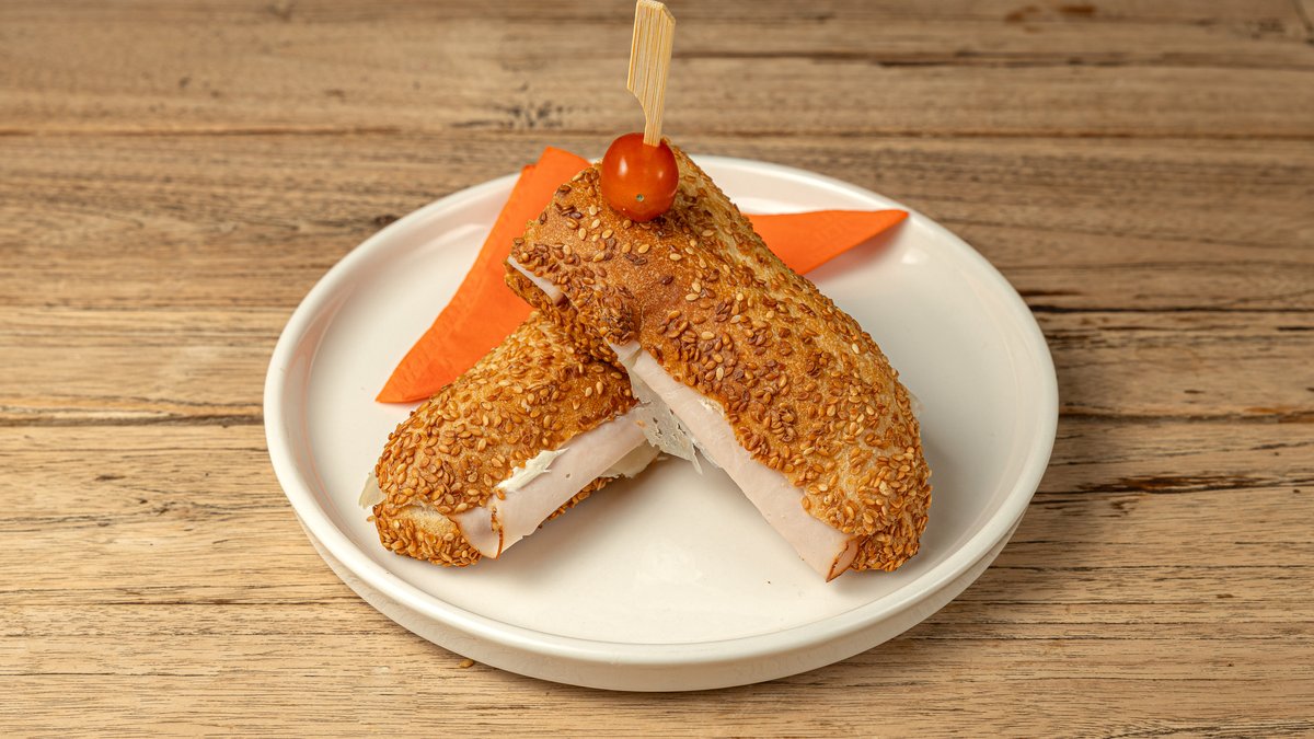 Κουλούρι Θεσσαλονίκης με γαλοπούλα, γραβιέρα και κρέμα τυριού philadelphia