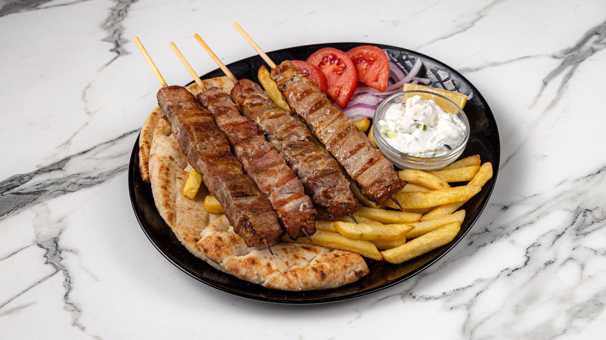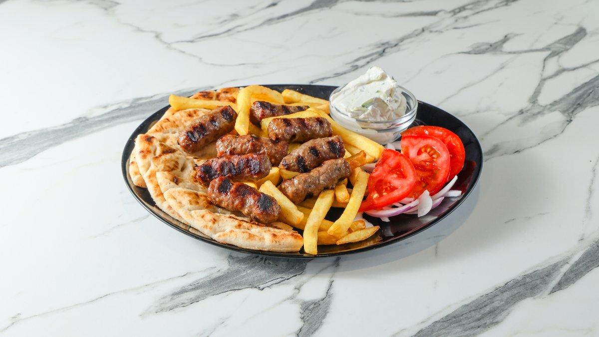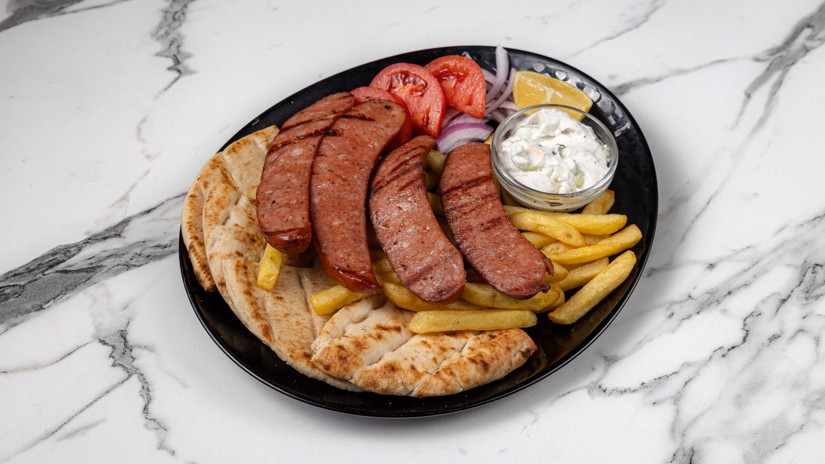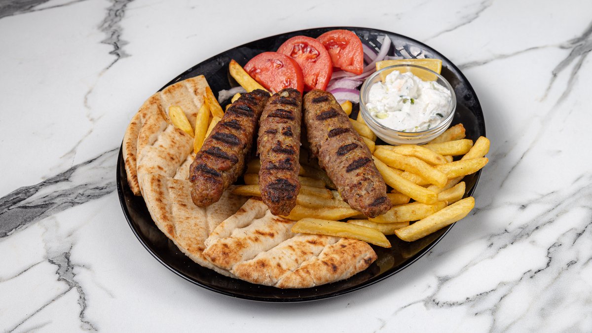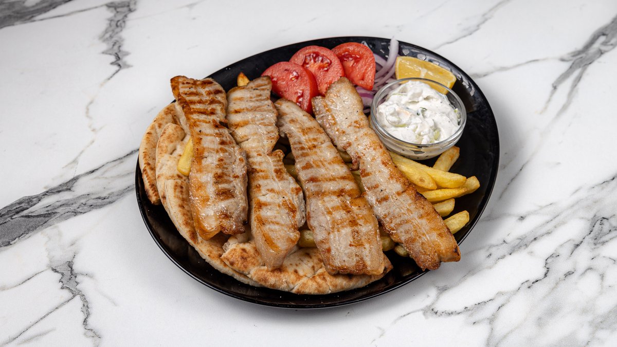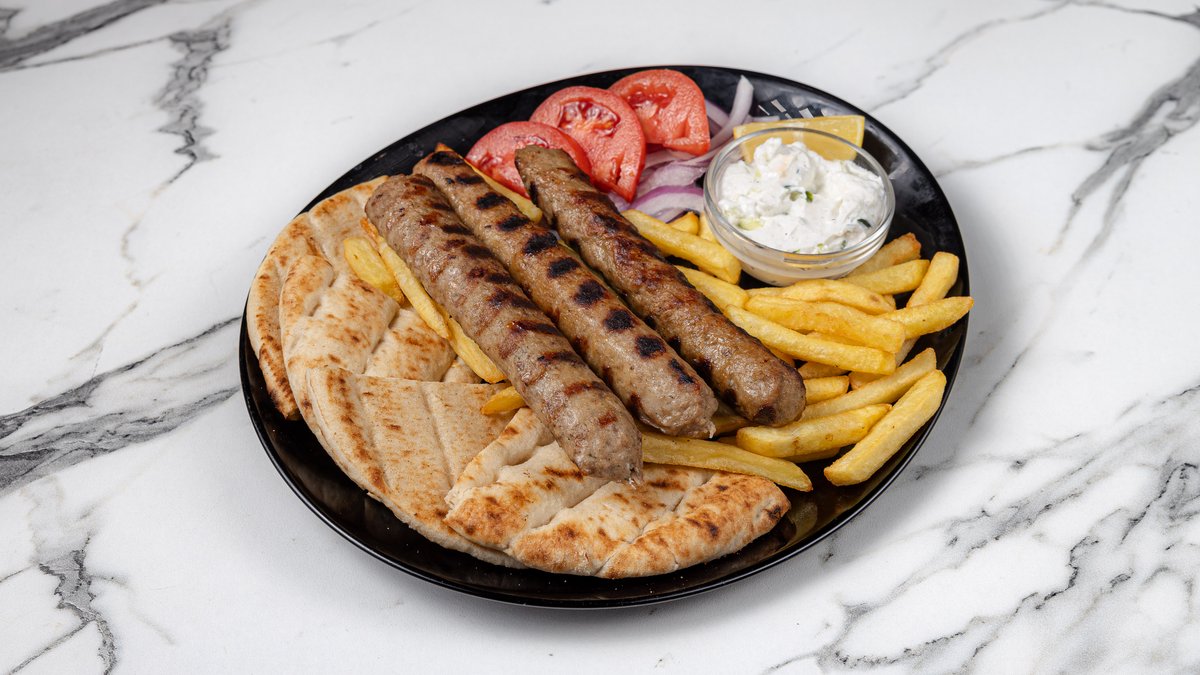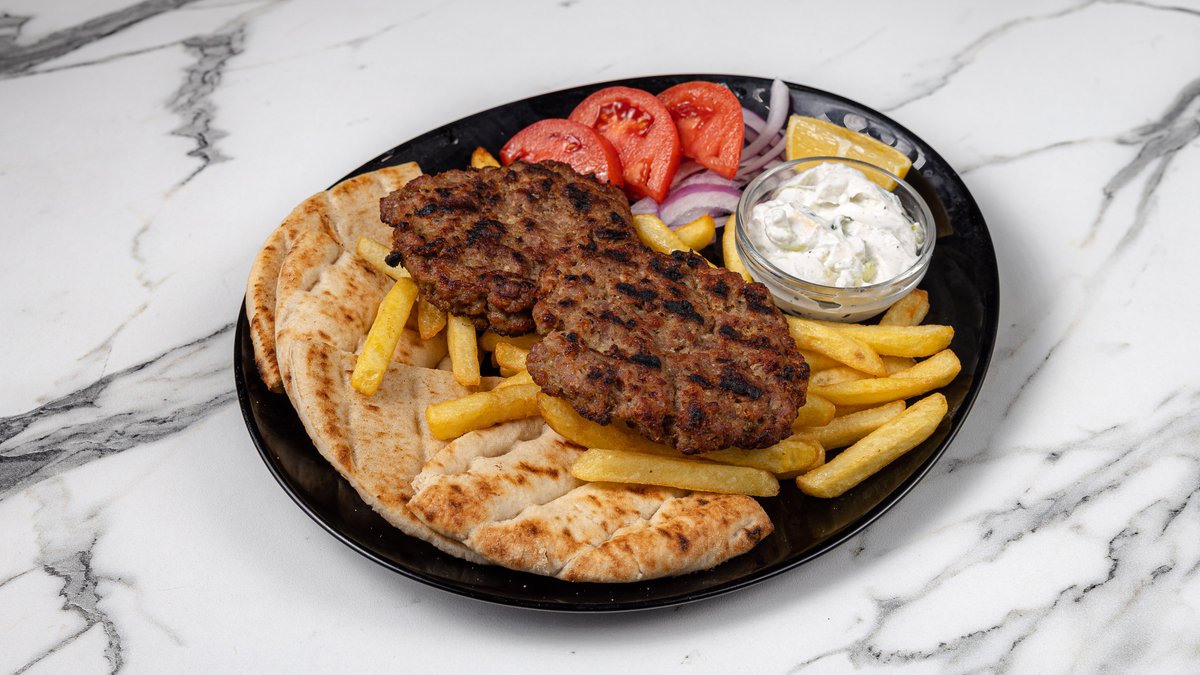 2 τμχ. Συνοδεύεται με πατάτες, ντομάτα, κρεμμύδι, πίτα και αλοιφή επιλογής