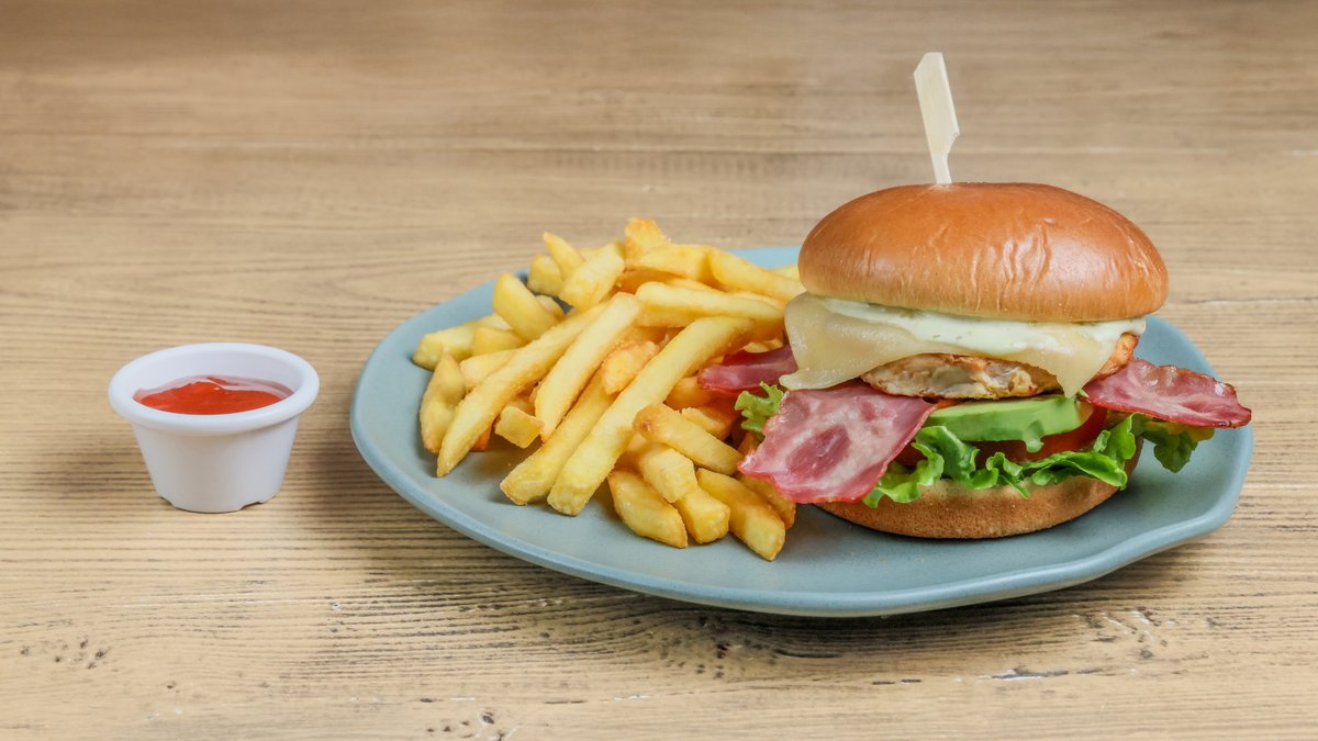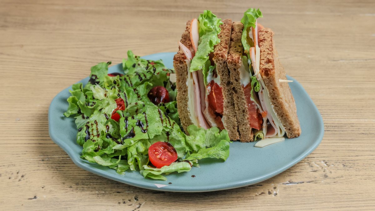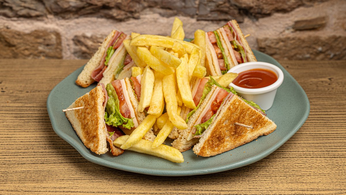 Με γαλοπούλα, τυρί, μπέικον, ντομάτα, μαρούλι και μαγιονέζα. Συνοδεύεται από πατάτες τηγανητές ή σαλάτα