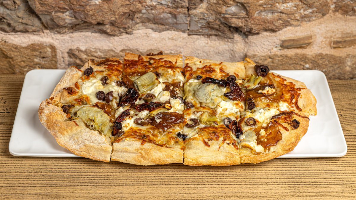 Με ψητά λαχανικά, φιλαδέλφεια, γκούντα και γλάσο βαλσάμικου. Συνοδεύεται από πατάτες τηγανητές ή σαλάτα