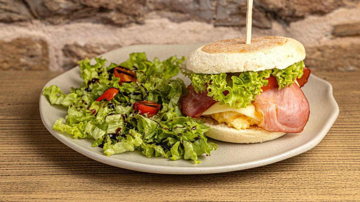 Αυγά επιλογής με μπέικον ή γαλοπούλα, σαλάτα και ψωμί φρυγανισμένο