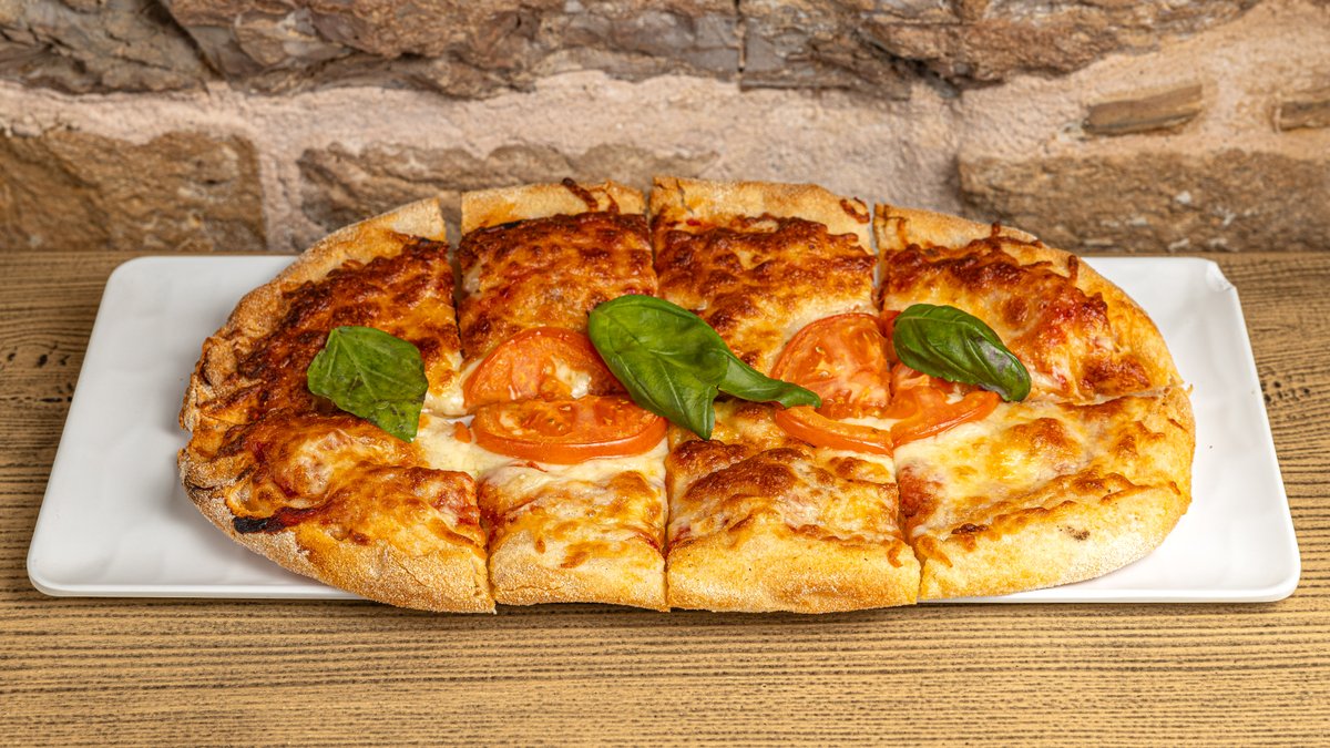 Φρέσκια ντομάτα, μαρινάρα σάλτσα, μοτσαρέλα και φρέσκος βασιλικός