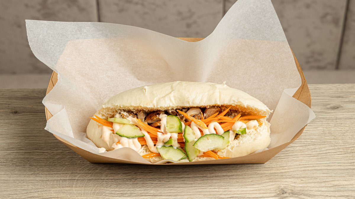 1 Piece. Slow cooked pork neck, carrot sticks, fresh onion, golden bbq sauce and sweet chilly