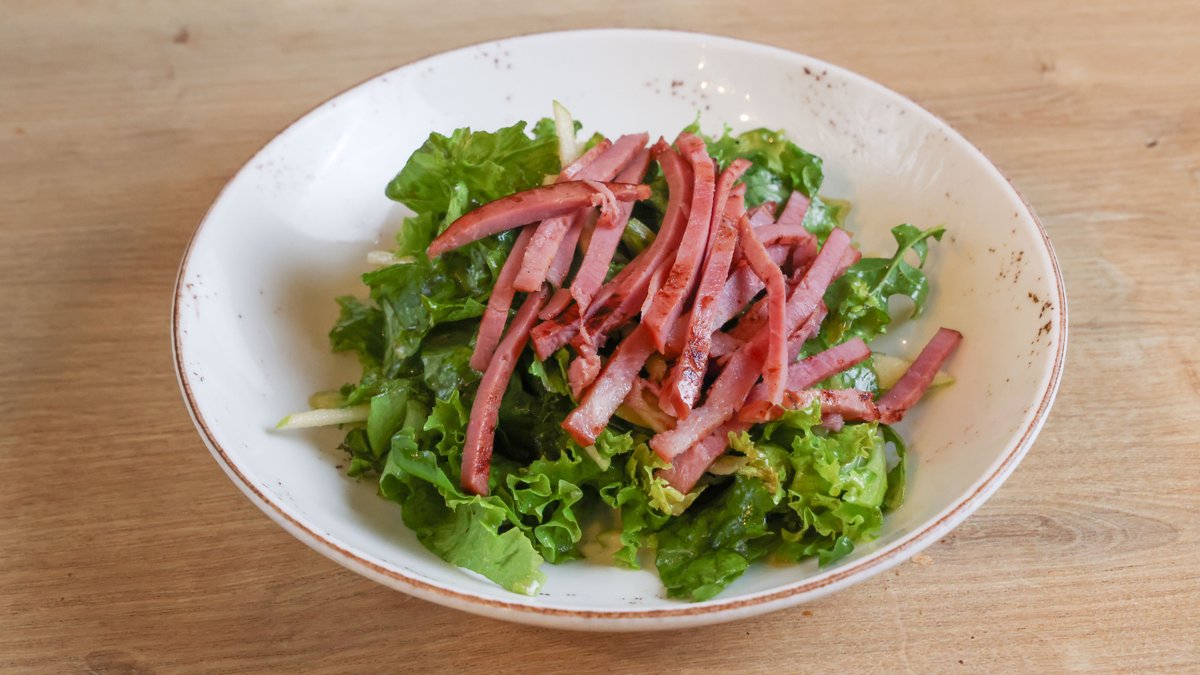 Με μαρούλι, ρόκα, μήλο, μπέικον και ξύδι από μήλο