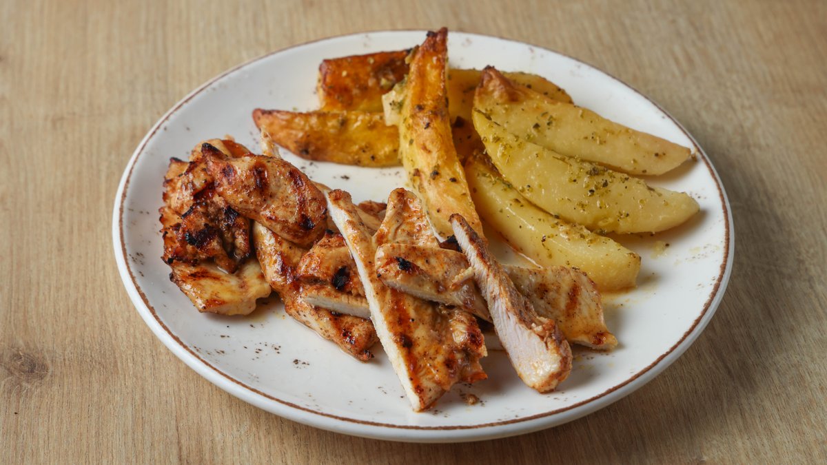 Συνοδεύεται με πατάτες τηγανιτές και σως επιλογής