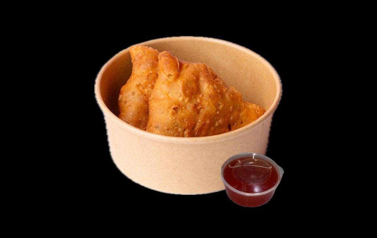 2 Τεμάχια. Τραγανή ζύμη γεμιστή με πικαντικο πουρέ πατάτας και αρακά. Συνοδεύεται από σ΄΄αλτσα με mix chutneys