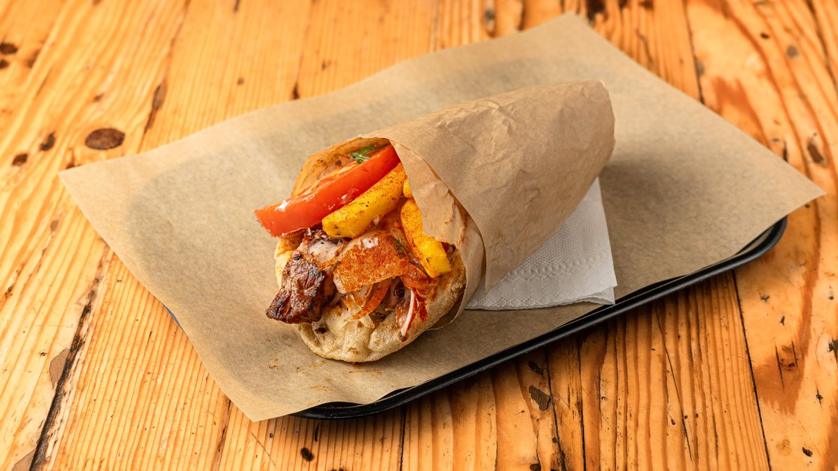 Καλαμάκι Χοιρινό Ρώσικο σε Πίτα