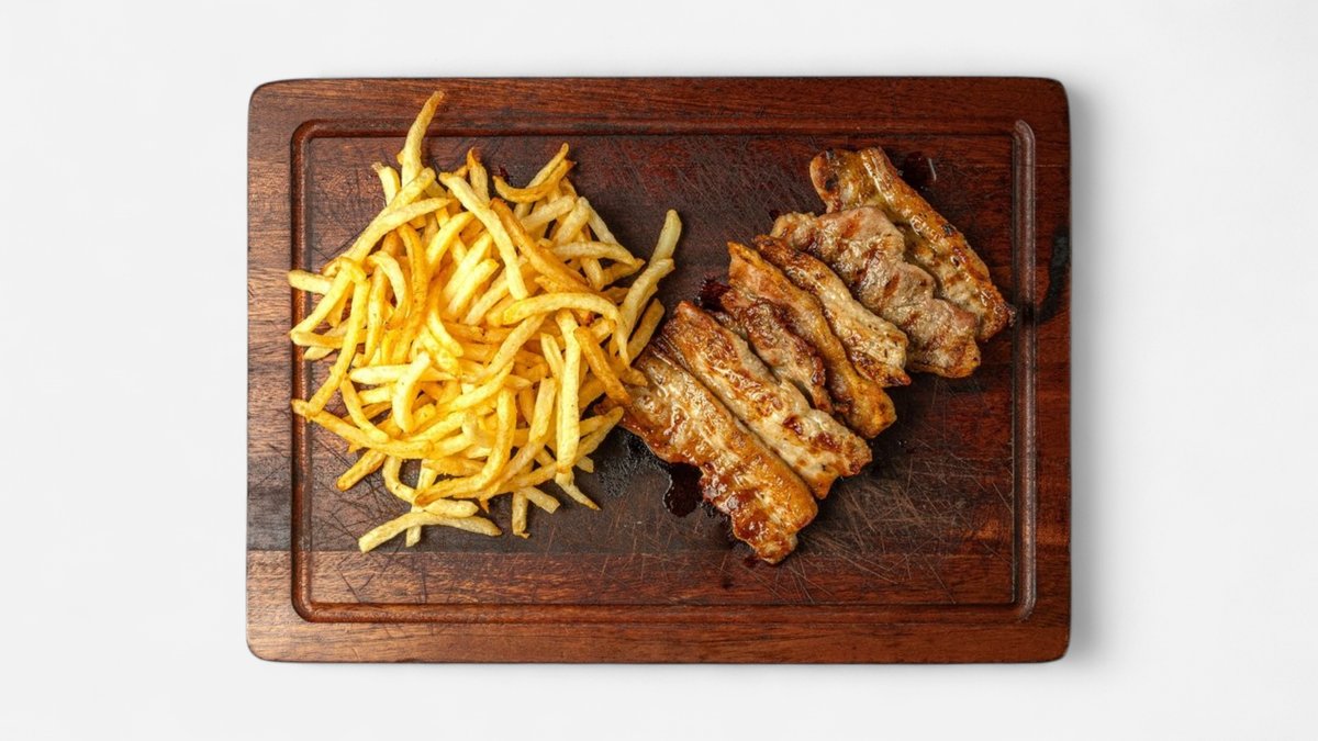 850-950 g. Συνοδεύεται από πατάτες τηγανητές