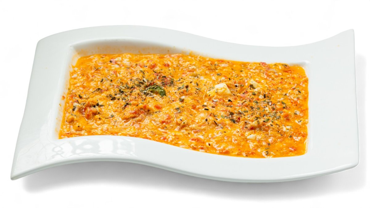 Με γαρίδες, καλαμάρι, χταπόδι, μύδι ψίχα και μύδι κέλυφος. Συνοδεύεται από τριμμένο κεφαλοτύρι