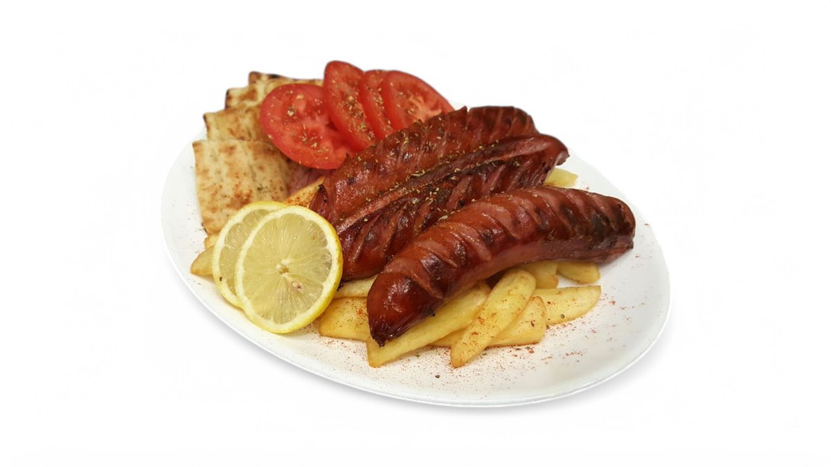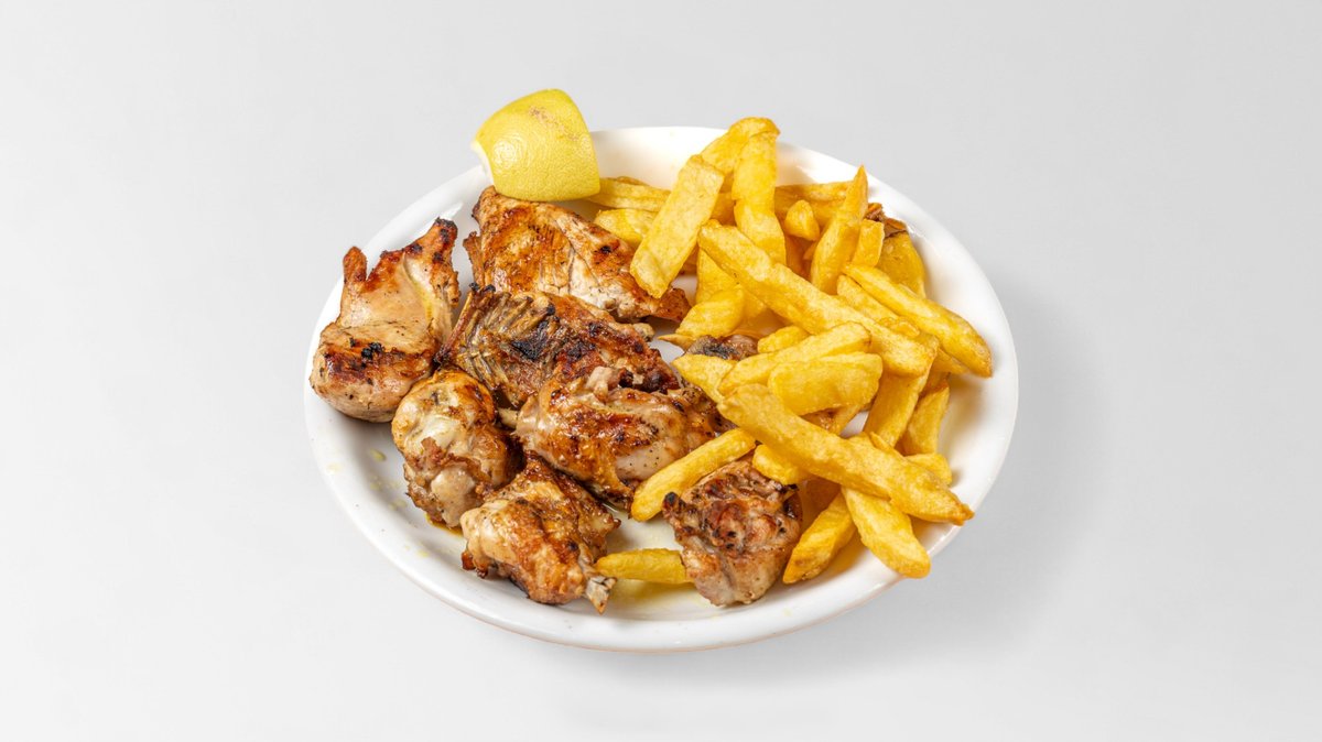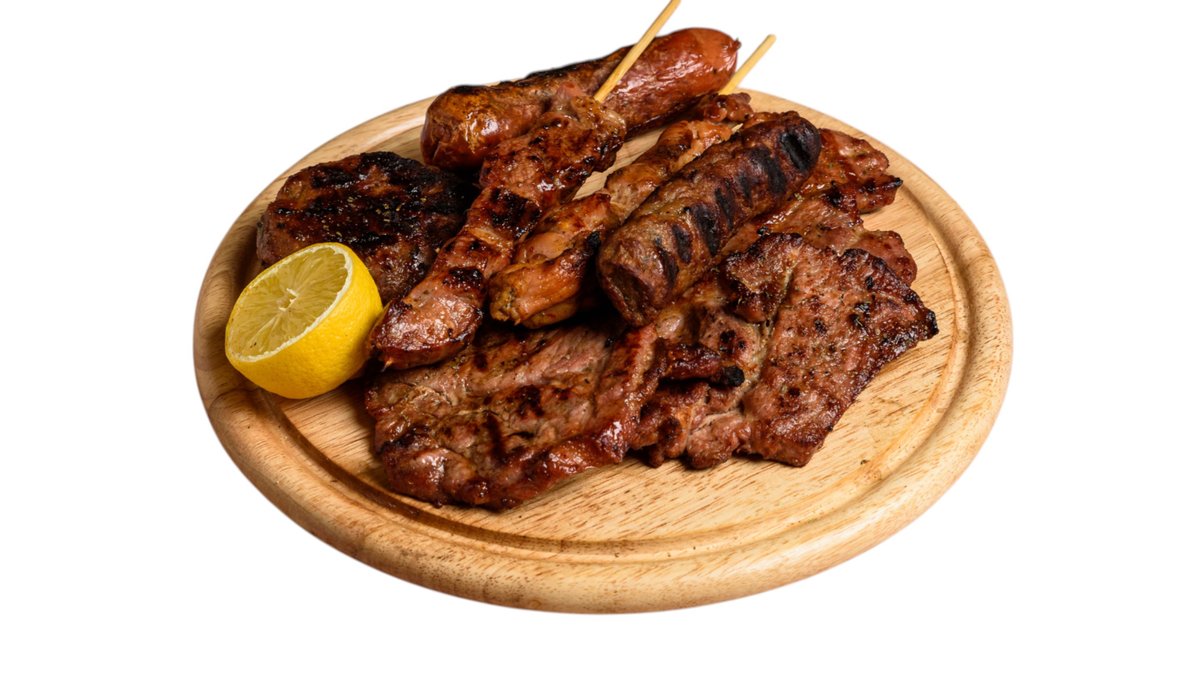 Με λουκάνικο, μπιφτέκι, μπριζόλα χοιρινή, πανσέτα χοιρινή και παϊδάκια κοτόπουλο, σουβλάκι χοιρινό. Συνοδεύεται από πίτα και πατάτες τηγανητές