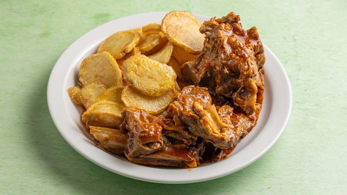 Συνοδεύεται από ρύζι, μακαρόνια ή πατάτες τηγανητές