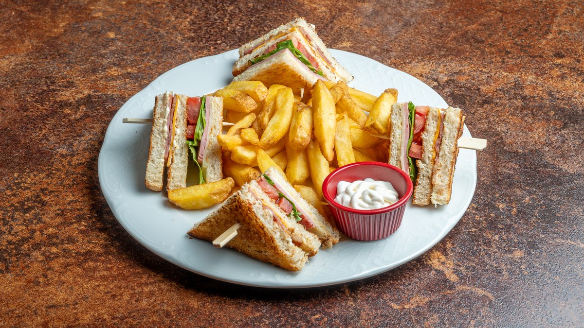 Με ζαμπόν, μπέικον, cheddar, gouda, ντομάτα, μαρούλι και μαγιονέζα. Συνοδεύεται από πατάτες τηγανητές country και 1 dip της επιλογής σου