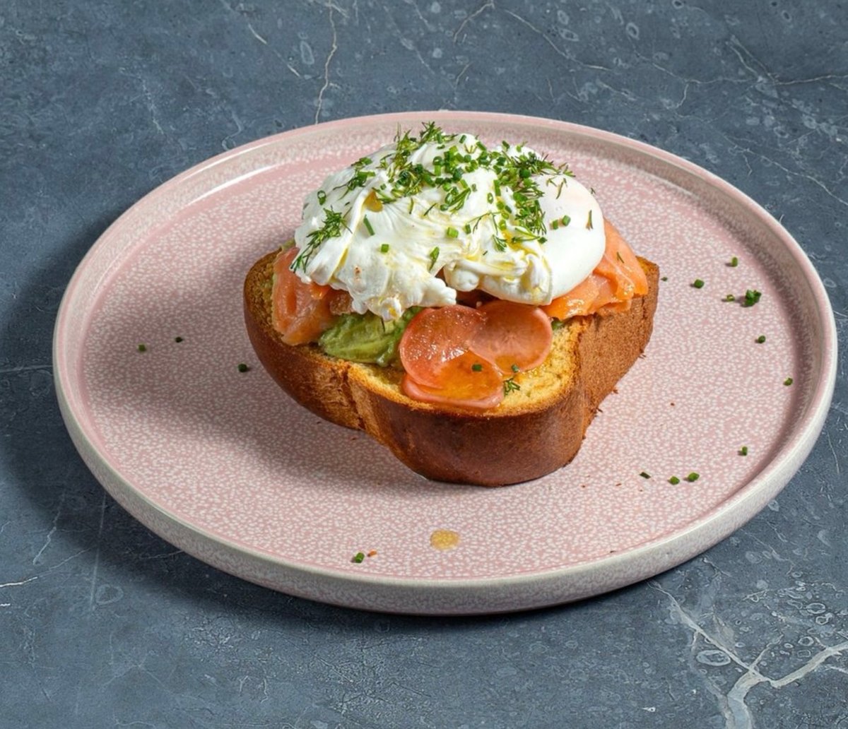 Κουλούρι πολύσπορο, καπνιστός σολομός, τυρί κρέμα, scrambled eggs, lemon honey dressing και chives