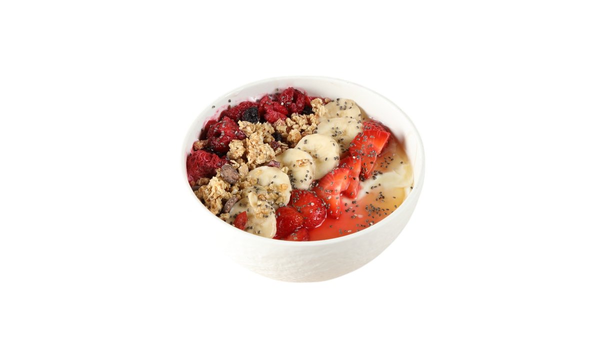Γιαούρτι 2%, granola, δημητριακά, φρούτα εποχής, μέλι ανθέων και σπόρους chia