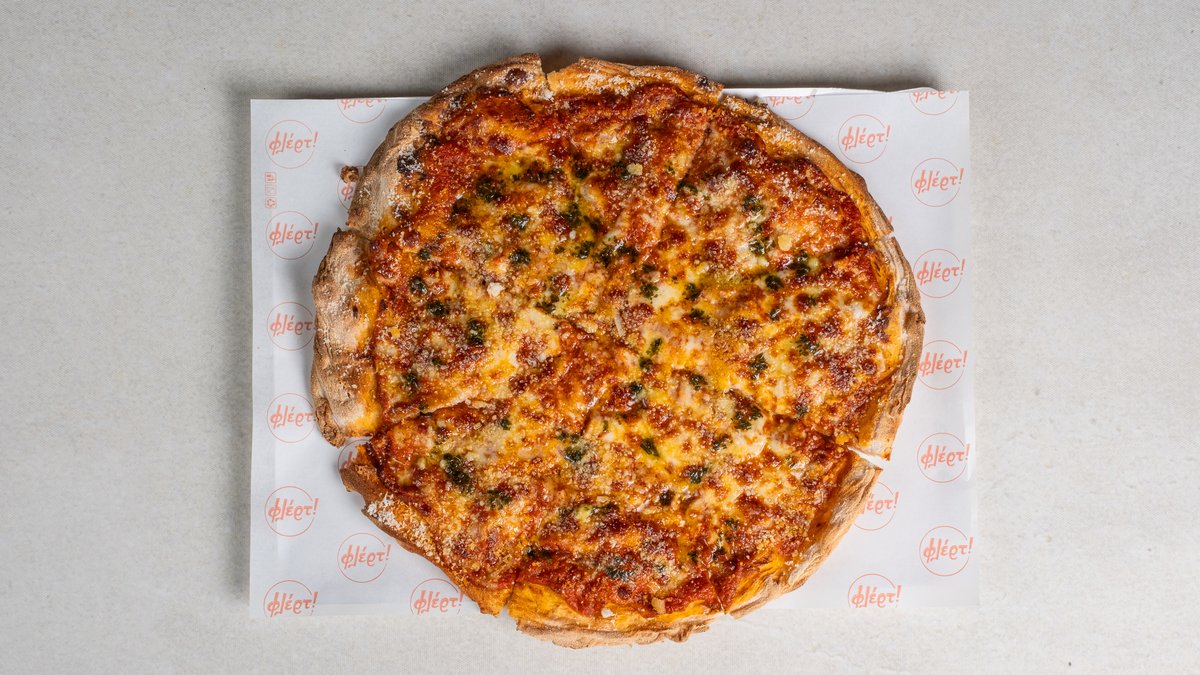 Με σάλτσα ντομάτας καυτερή, mozzarella, πεπερόνι και φρεσκοτριμμένο πιπέρι