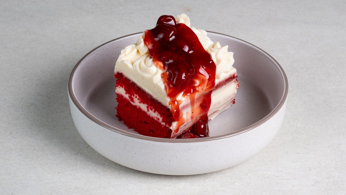Κρέμα πατισερί, σάλτσα με ολόκληρα κομμάτια φράουλας, λευκή σοκολάτα