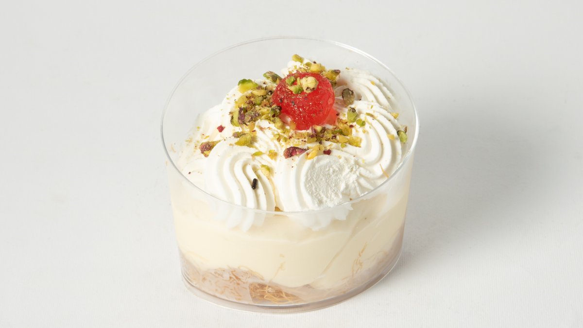 Κρέμα με καβουρδισμένο κανταΐφι, λάβα φιστικιού και σοκολάτα γάλακτος