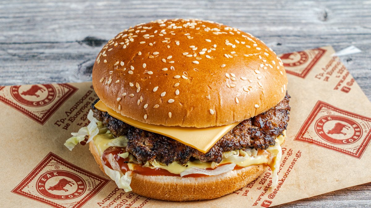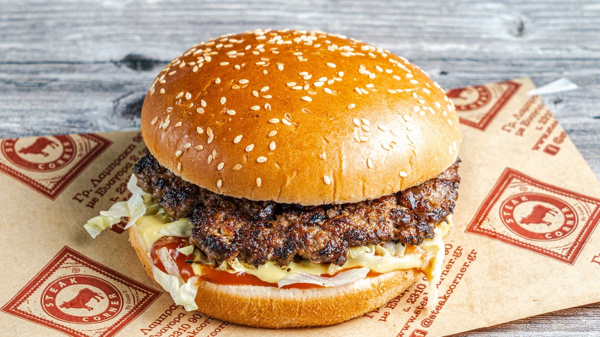 Χειροποίητος ανάμεικτος κιμάς χοιρινό-μοσχάρι, iceberg, cheddar, κέτσαπ και μουστάρδα