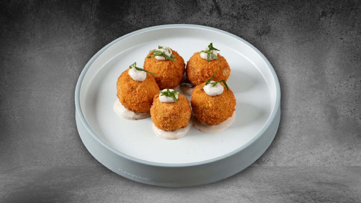 Κροκέτες ρυζιού τραγανές με κιμά, mozzarella και μυρωδικά φρέσκα. Συνοδεύεται από δροσερό dip γιαουρτιού με τζίντζερ