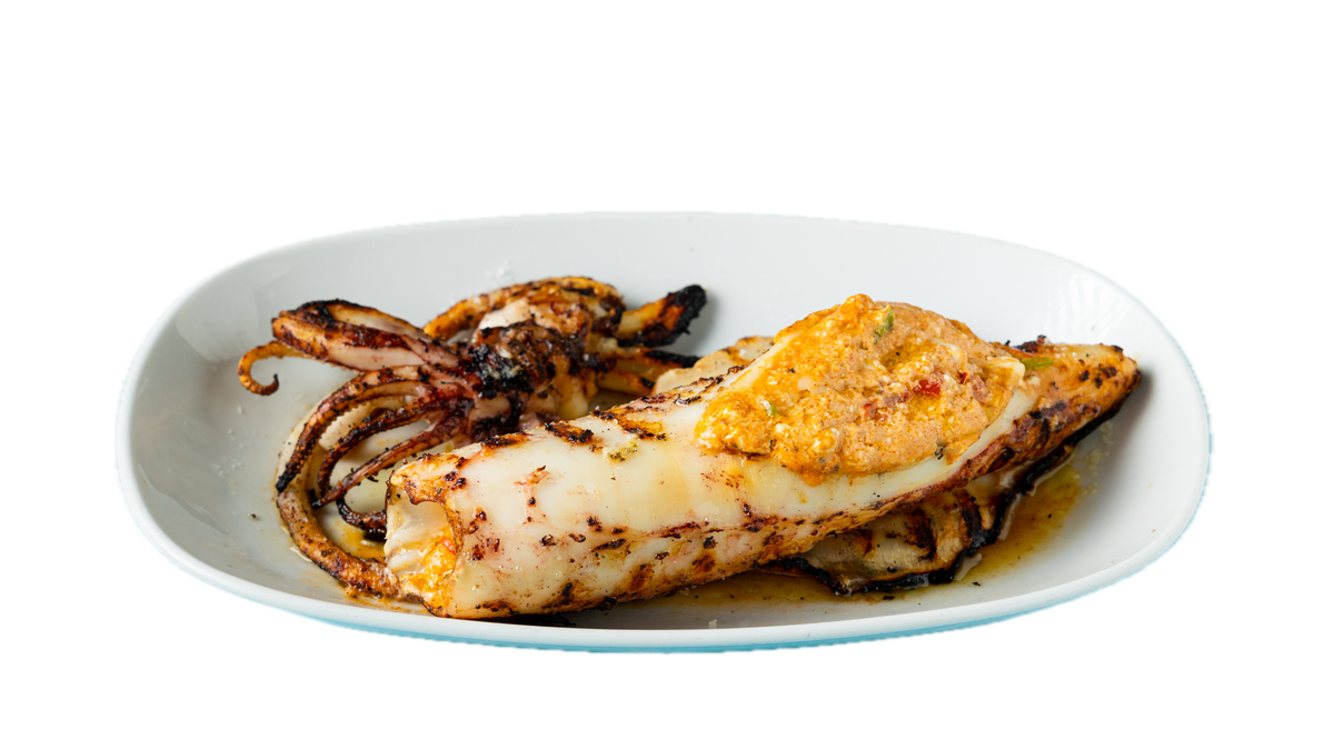 Καλαμάρι Γεμιστό με Μυζήθρα και Μυρωδικά