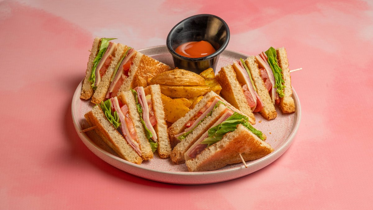 Τυρί, μπέικον, ζαμπόν,μαρούλι,ντομάτα,μαγιονεζα Συνοδεύεται από πατάτες country