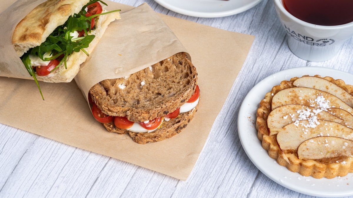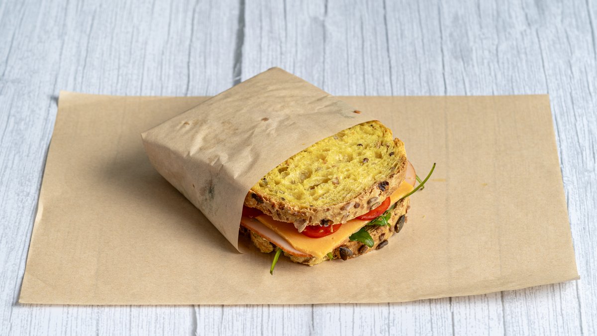 With cheese, cheddar, smoked turkey, cherry tomatoes, and arugula