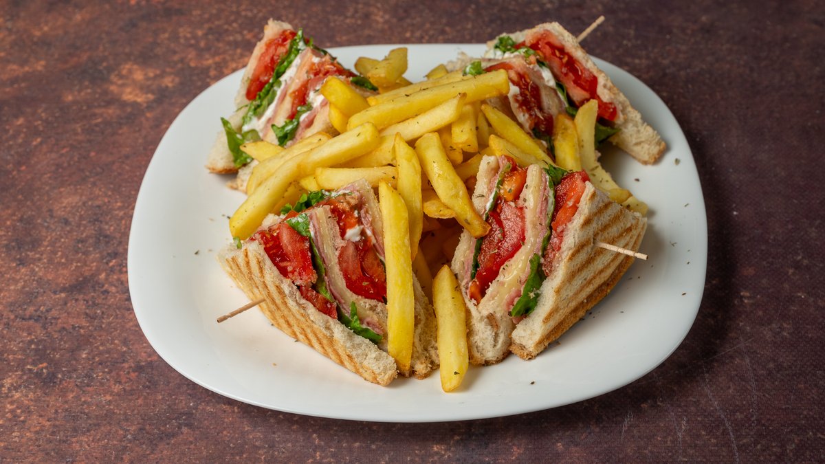 Ζαμπόν, τυρί ένταμ, ντομάτα, lollo verde και dressing μαγιονέζας