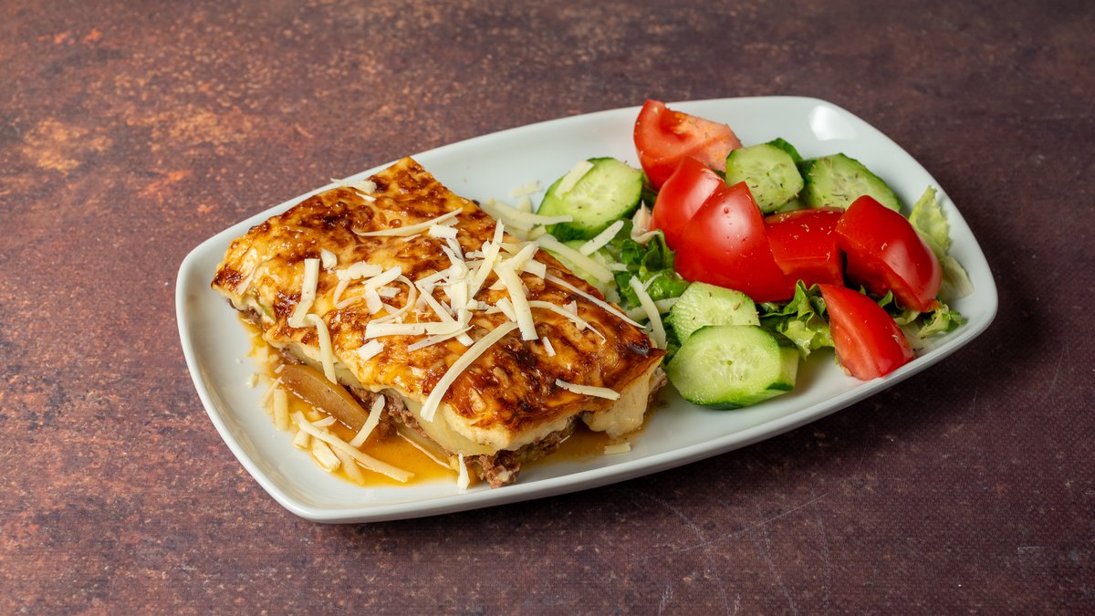Με πατάτες τηγανητές και πράσινη σαλάτα