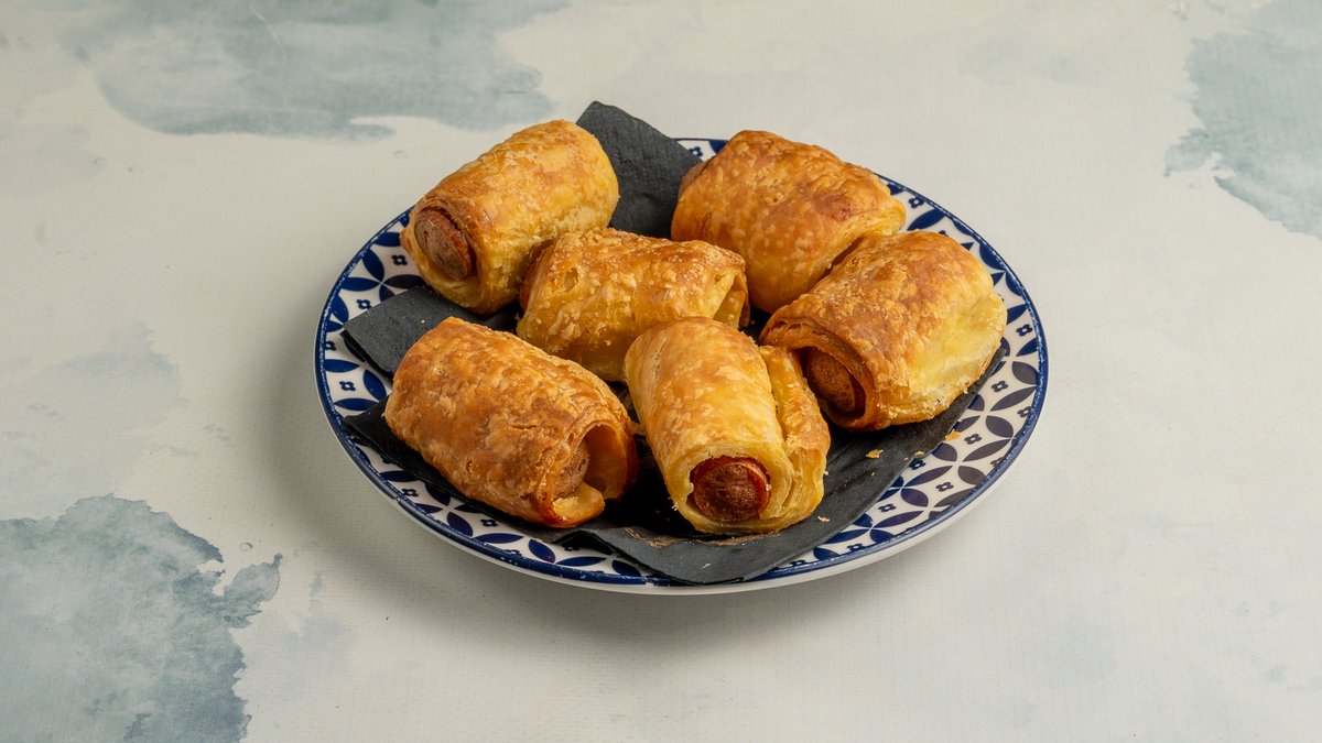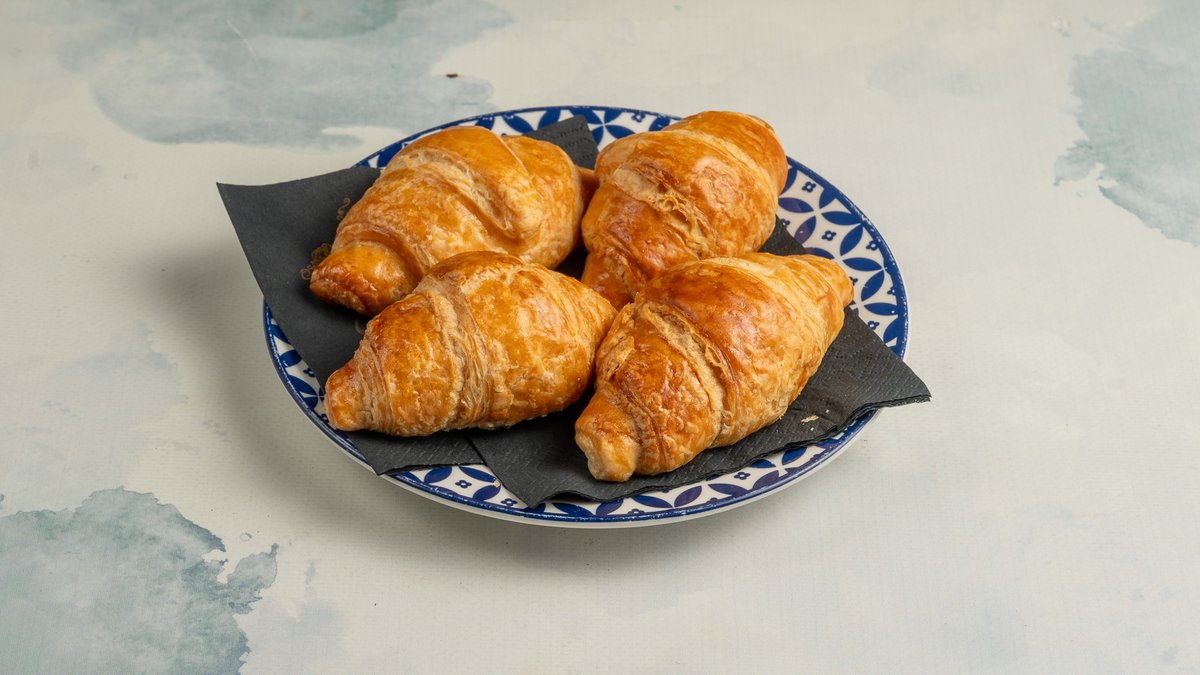 With butter croissant, 2 mini chocolate croissants, cookies, butter, jam and bread