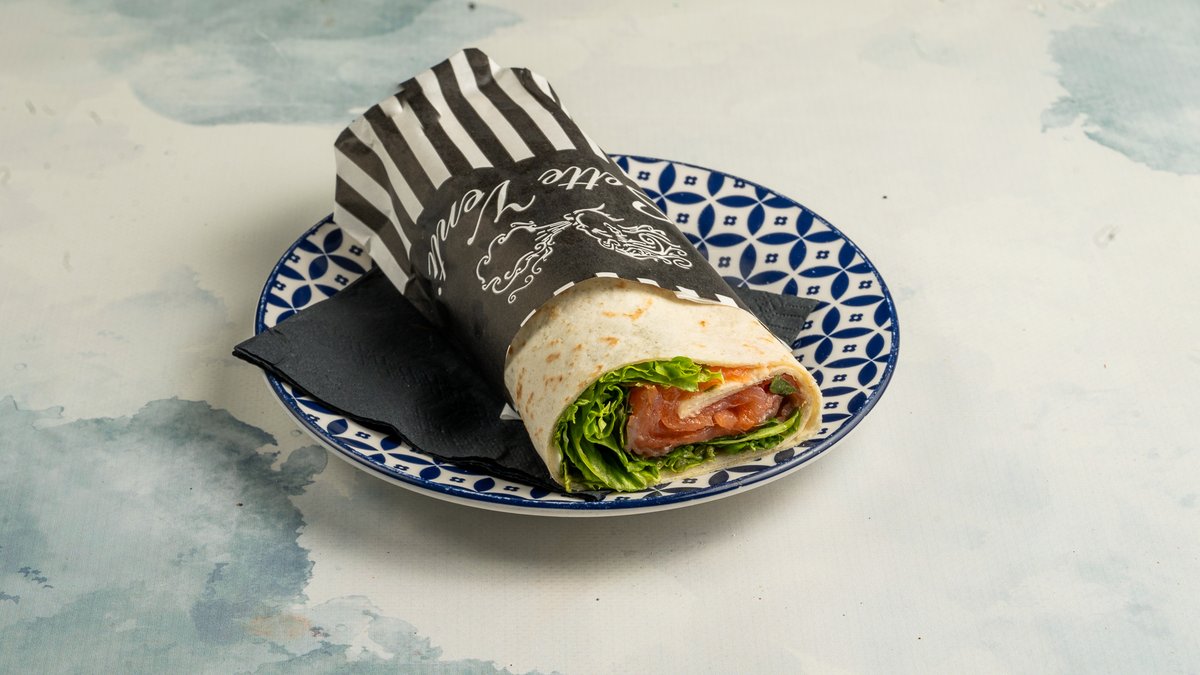 With salmon, lollo verde, arugula, capers, ginger flakes and orange sauce