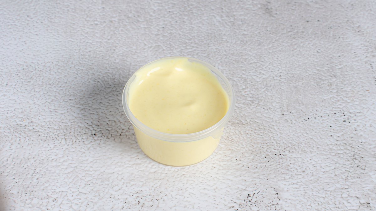 Ψωμί brioche με κοτόπουλο crispy, μρούλι σγουρό, pickle sauce, aioli sauce και cheddar sauce