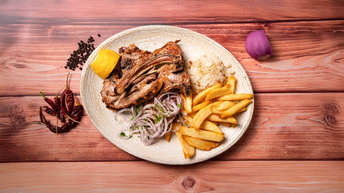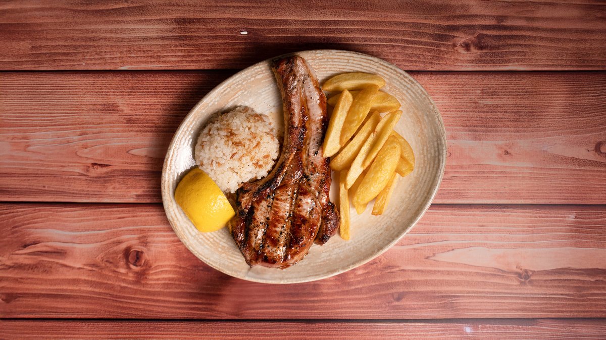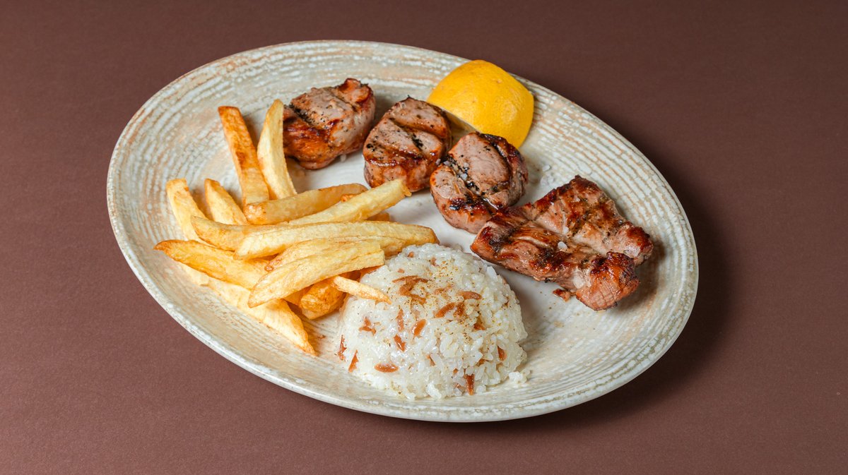 Ψημένα στα κάρβουνα Συνοδεύεται με πατάτες τηγανητές και ατζέμ πιλάφι