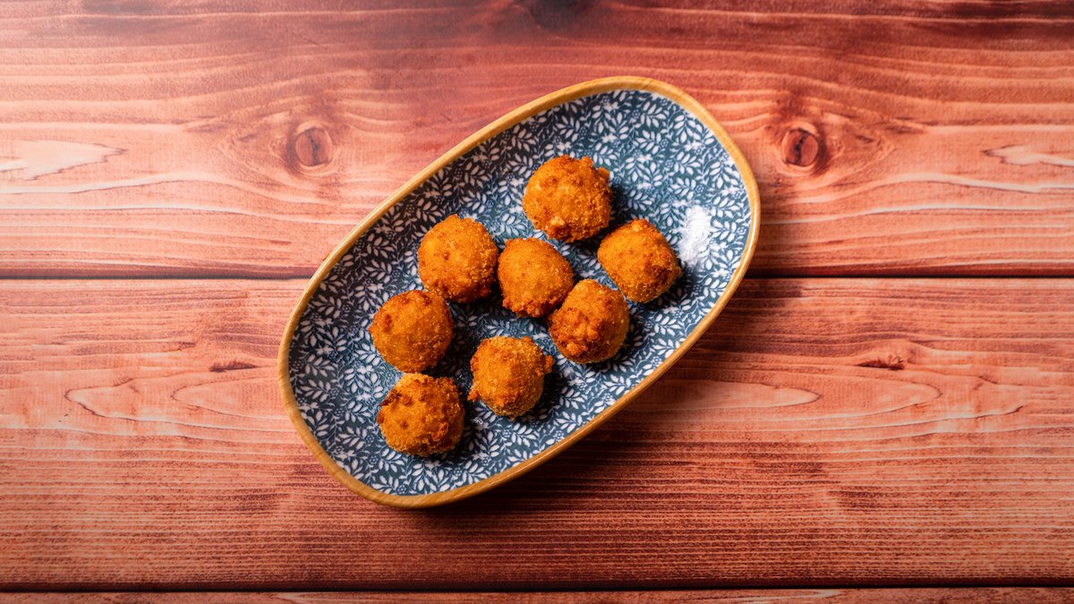 Με φέτα και κασέρι τυρί. Συνοδεύεται με πατάτες και ρύζι