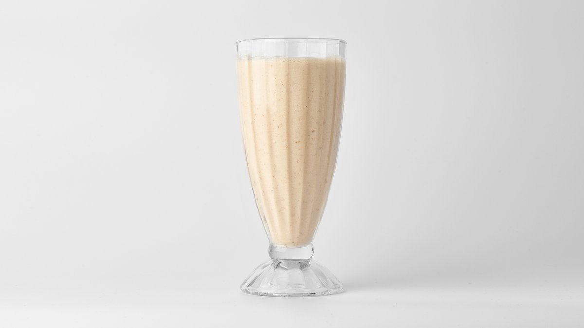 γάλα αμυγδάλου, φυστικοβούτυρο, μέλι θυμαρίσιο, μπανάνα, νιφάδες βρώμης