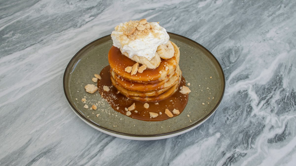καραμέλα αλμυρή, μπανάνα, μπισκότο, σαντιγύ