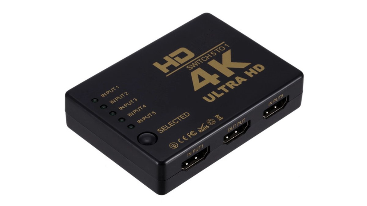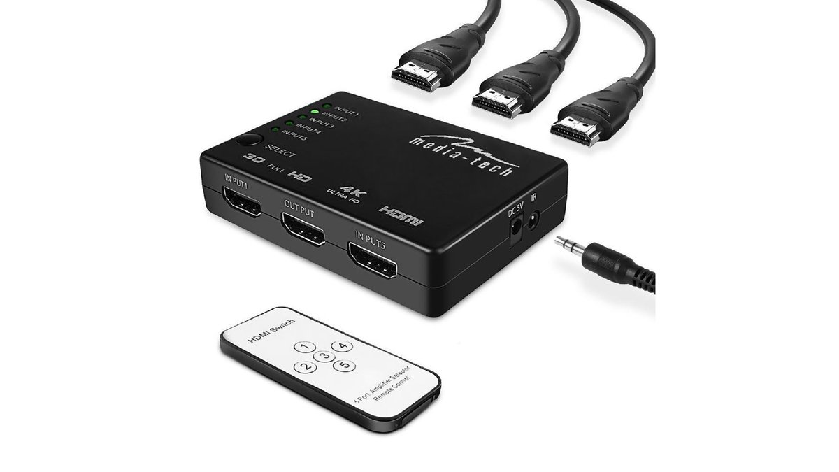 Hdmi Switch Media-Tech 5 Θέσεων Με Υποστήριξη Ανάλυσης 4K Και Τηλεχειριστήριο. Μαύρο